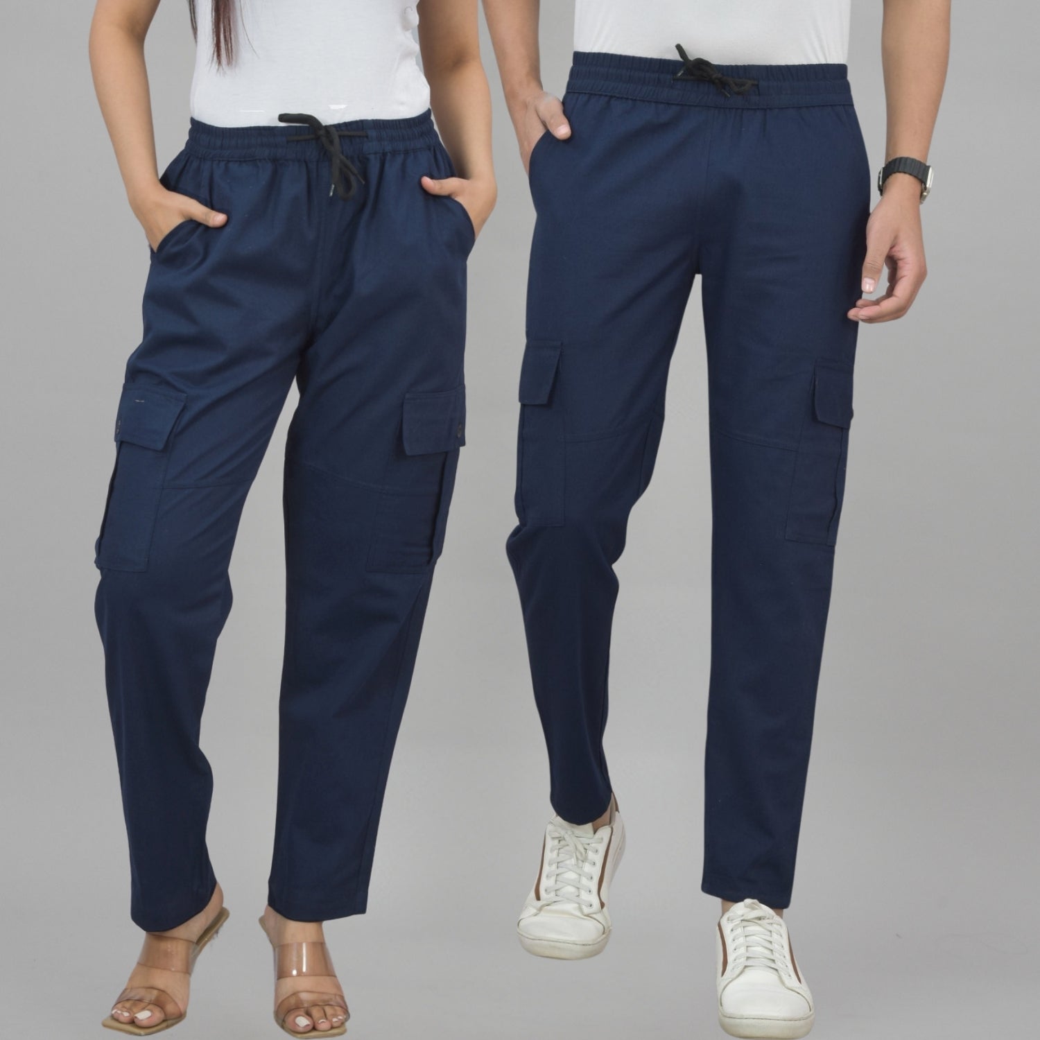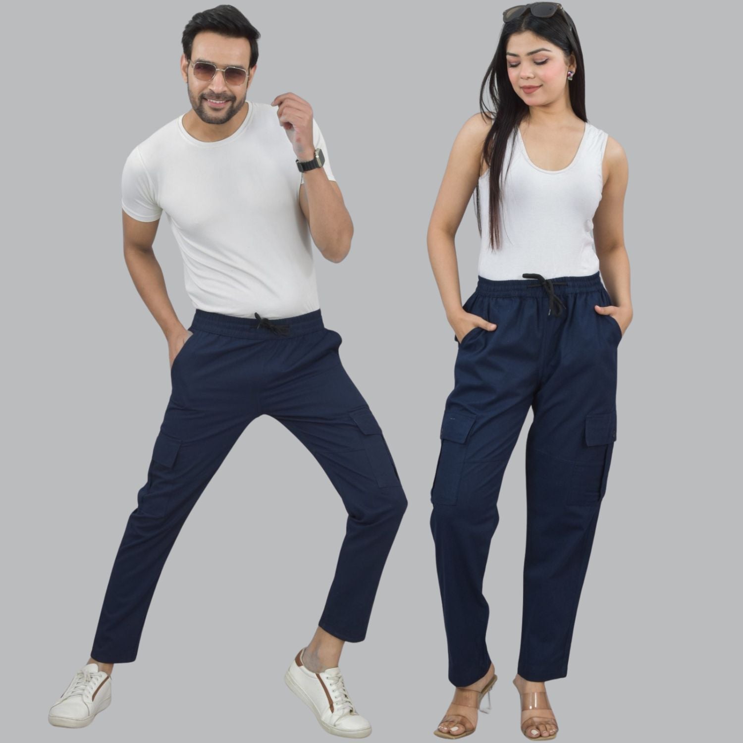 Quaclo Couple Navy Blue 5 Pocket Twill Straight Cargo