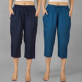 Pack Of 2 Womens Navy Blue And Teal Blue Calf Length Rayon Culottes Trouser Combo