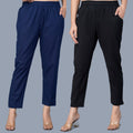 Pack Of 2 Womens Regular Fit Navy Blue And Black Fully Elastic Waistband Cotton Trouser