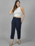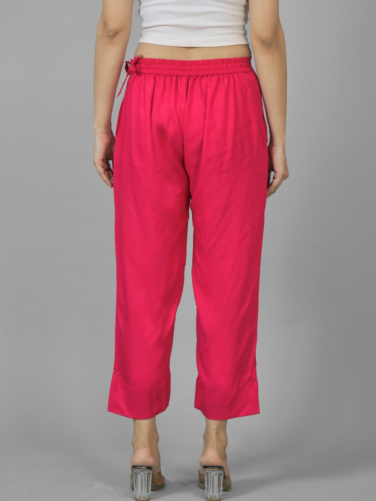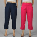 Pack Of 2 Womens Navy Blue And Rani Pink Ankle Length Rayon Culottes Trouser Combo