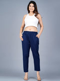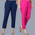 Pack Of 2 Womens Regular Fit Navy Blue And Rani Pink Fully Elastic Waistband Cotton Trouser