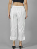 These Pack Of 2 Women's Rayon Ankle Length Culottes Trousers Combo from Quaclo will Increase your level of style. These pair of adaptable culottes effortlessly combines comfort and style, making them the ideal choice for any situation. With a convenient back elastic waistband and On side Drawstring. The two spacious pockets improve functionality and convenience for your daily activities, and the solid design makes these trousers a long-lasting classic in your wardrobe.