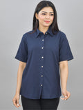 Pack Of 2 Womens Solid Navy Blue And Wine Half Sleeve Cotton Shirts Combo