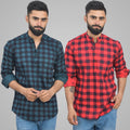 Pack Of 2 Mens Ocian Blue And Red Check Cotton Short Kurta Combo