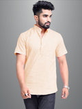 Pack of 2 Mens Solid Off White And Red Khadi Cotton Short Kurta Combo