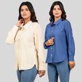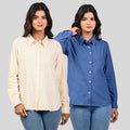 Women Off White And Teal Blue Solid Airy Linen Cotton Shirts Combo