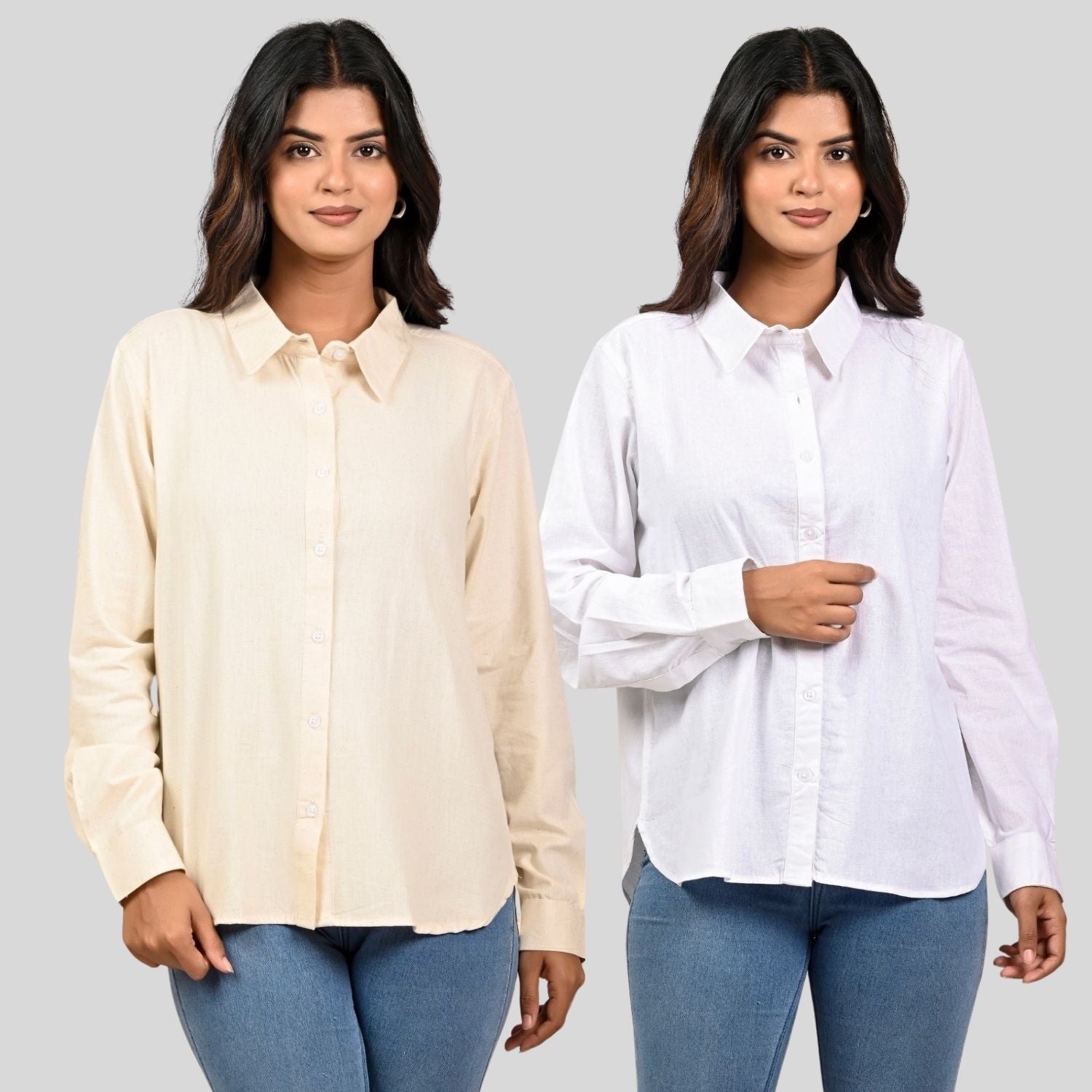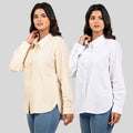 Women Off White And White Solid Airy Linen Cotton Shirts Combo