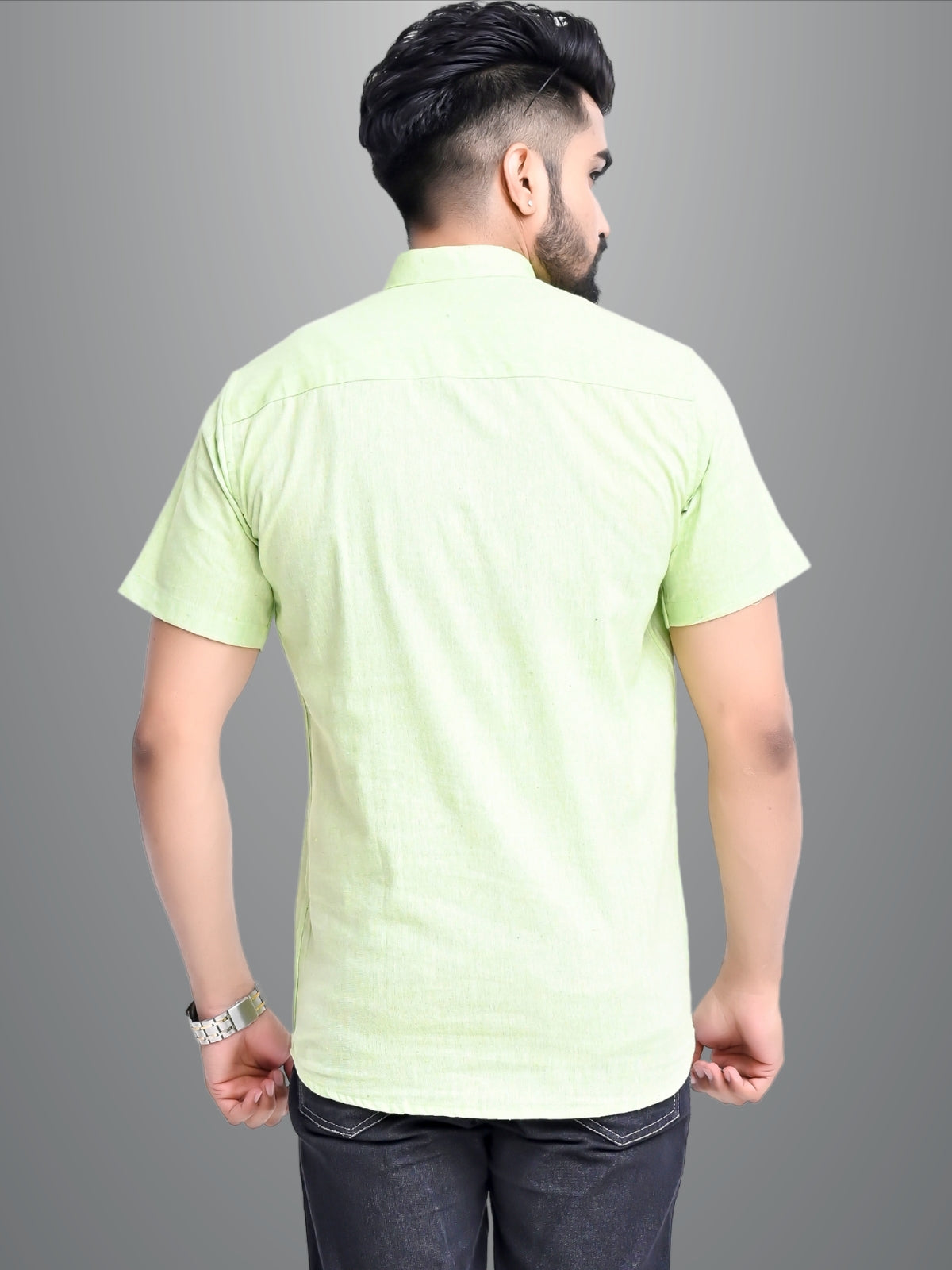 Pack of 2 Mens Solid Orange And Parrot Green Khadi Cotton Short Kurta Combo