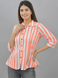 Pack Of 2 Womens Orange And Pink Spread Collar Striped Shirt Combo