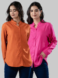Pack Of 2 Orange And Pink Solid Viscose Shirts Combo
