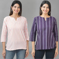 Our Set of Two Striped Cotton Women Tops Combo offers unmatched comfort and style. For stylish ladies who value both cost and quality, these contemporary tops are ideal. These tops, which are made of soft and lightweight cotton, have a timeless striped pattern that elevates any outfit. These tops are adaptable for any occasion with a flattering fit and a robust design. With this essential set, you can up your style ante while maintaining comfort. Get our Striped Cotton Women Tops Combo today to stand out From The Crowd.