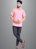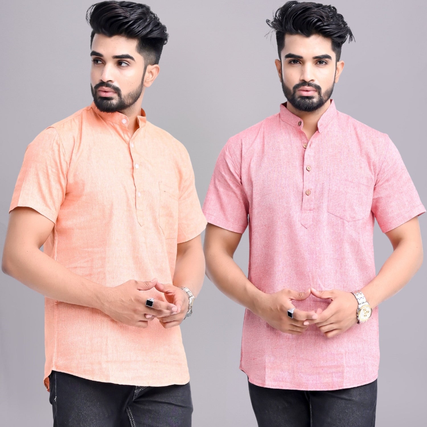 Pack of 2 Mens Solid Orange And Red Khadi Cotton Short Kurta Combo