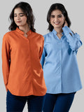 Pack Of 2 Orange And Sky Blue Solid Viscose Shirts Combo