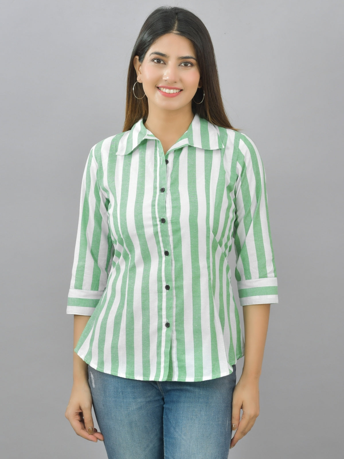 These Pack Of 2 Womens Cotton Striped Shirt Combo , is the ideal fusion of comfort and design, it will upgrade your wardrobe, made from a high-quality cotton and polyester blend that keeps you comfortable all day. Your outfit is made more sophisticated by the tasteful white stripes that are paired with an alluring secondary colour. This adaptable shirt is the perfect pick whether you're going to the office, on a casual trip, or to a weekend brunch. It radiates classic appeal and ups your fashion game, complete with a wide spread collar. The Quaclo Women's Striped Shirt can help you achieve modern elegance right away.
