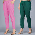 Pack Of 2 Womens Regular Fit Pink And Bottle Green Fully Elastic Waistband Cotton Trouser