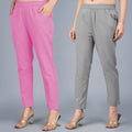 Pack Of 2 Womens Regular Fit Pink And Grey Fully Elastic Waistband Cotton Trouser