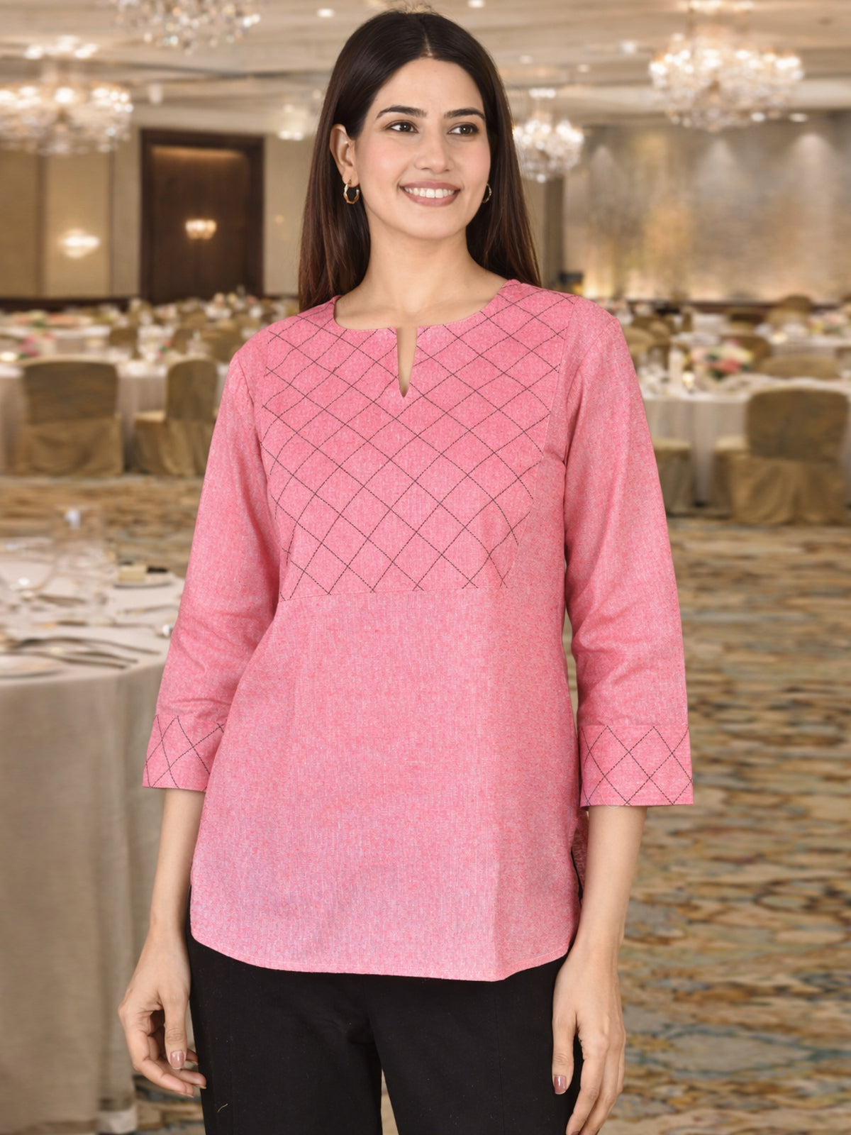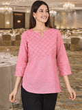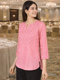 Pink Handloom Cotton Yoke Top