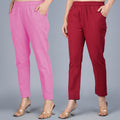 Pack Of 2 Womens Regular Fit Pink And Maroon Fully Elastic Waistband Cotton Trouser