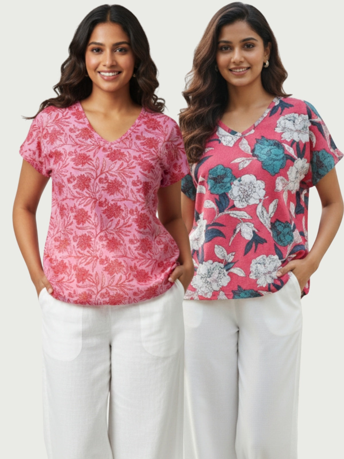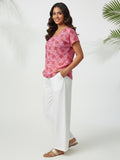 Pack Of 2 Womens Pink And Pink White Airy Linen Cotton Printed Tops