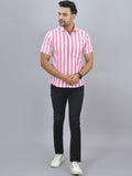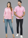 Pack Of 2 Quaclo Couple Pink Striped Cotton Shirts