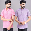 Pack of 2 Mens Solid Pink And Purple Khadi Cotton Short Kurta Combo