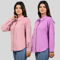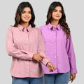 Women Pink And Purple Solid Airy Linen Cotton Shirts Combo