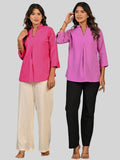 Solid Pink And Purple V Neck Viscose Pleated Tops Combo