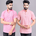 Pack of 2 Mens Solid Pink And Red Khadi Cotton Short Kurta Combo