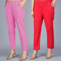 Pack Of 2 Womens Regular Fit Pink And Red Fully Elastic Waistband Cotton Trouser