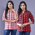 Pack Of 2 Womens Pink And Red Chekerd Casual Shirt Combo