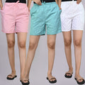 Pack Of 3 Pink, Sky Blue And White Printed Women Shorts Combo