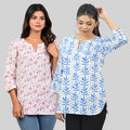 Pack Of 2 Womens Regular Fit Pink Vactor And Blue Leaf Printed Tops Combo