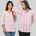 Pack Of 2 Womens Regular Fit Pink Vactor And Pink Leaf Printed Tops Combo