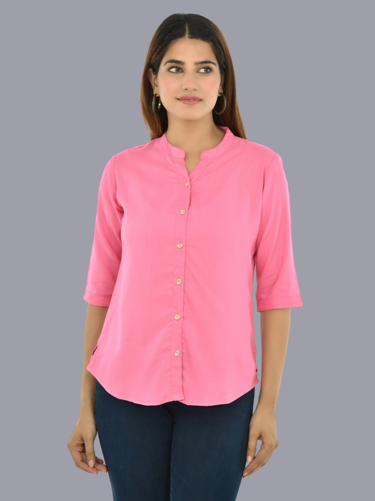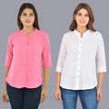 Pack Of 2 Womens Solid Pink and White Rayon Chinese Collar Shirts Combo