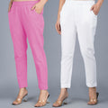 Pack Of 2 Womens Regular Fit Pink And White Fully Elastic Waistband Cotton Trouser
