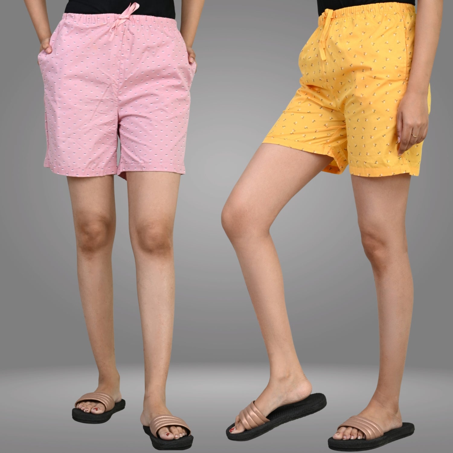 Pack Of 2 Womens Pink And Yellow Printed Short Combo