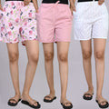 Pack Of 3 Printed Women Shorts Combo are the perfect blend of style and comfort. These shorts will keep you looking stylishly cool whether you're going on a summertime adventure or just lounging around inside in them for nighttime wear. These effectively designed shorts combine style and utility with eye-catching prints, an adjustable elastic waistband, and a convenient drawstring.