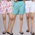 Pack Of 3 Printed Women Shorts Combo are the perfect blend of style and comfort. These shorts will keep you looking stylishly cool whether you're going on a summertime adventure or just lounging around inside in them for nighttime wear. These effectively designed shorts combine style and utility with eye-catching prints, an adjustable elastic waistband, and a convenient drawstring.