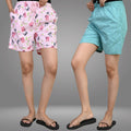 Pack Of 2 Womens Pink Teddy And Sky Blue Printed Short Combo