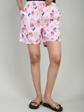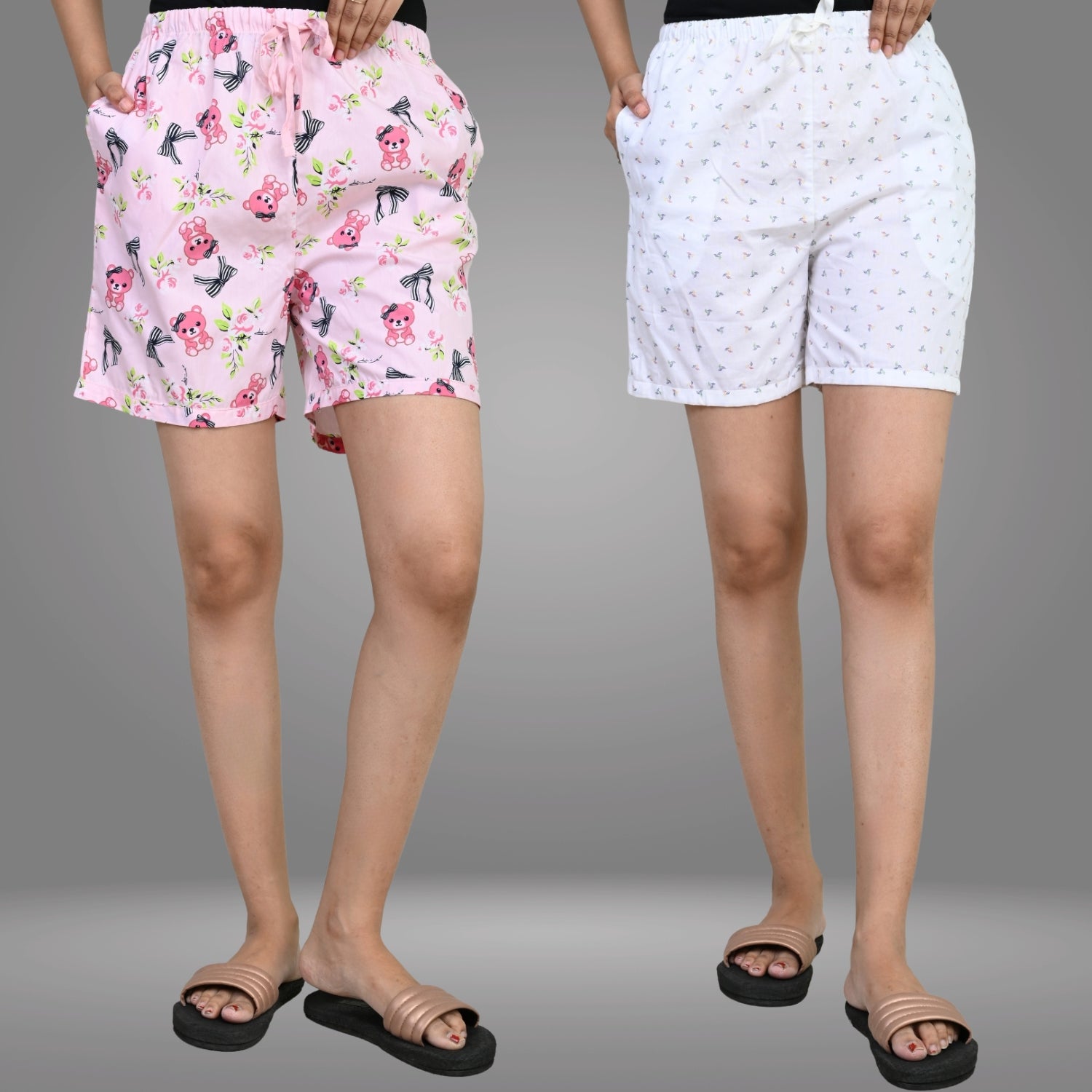 Pack Of 2 Womens Pink Teddy And White Printed Short Combo
