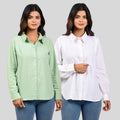 Women Pista Green And White Solid Airy Linen Cotton Shirts Combo