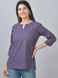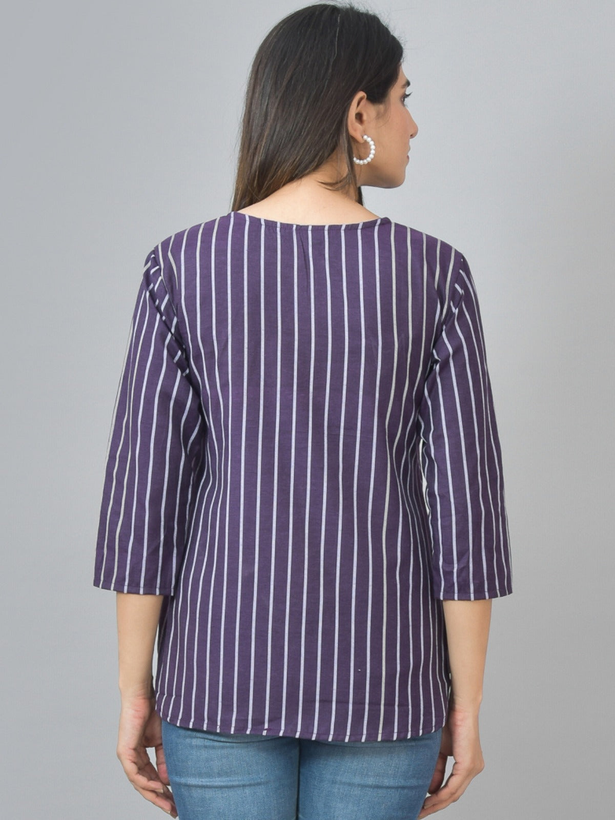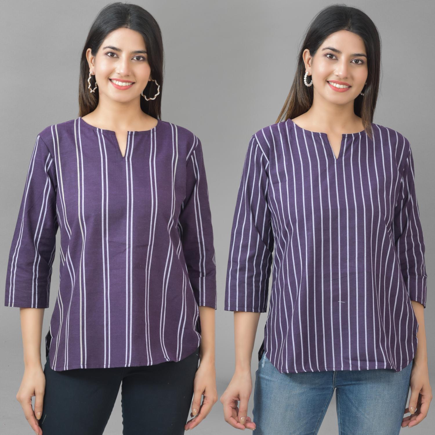 Pack Of 2 Purple And Dark Purple Striped Cotton Womens Top Combo