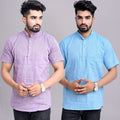 Pack of 2 Mens Solid Purple And Sky Blue Khadi Cotton Short Kurta Combo