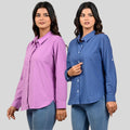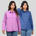 Women Purple And Teal Blue Solid Airy Linen Cotton Shirts Combo