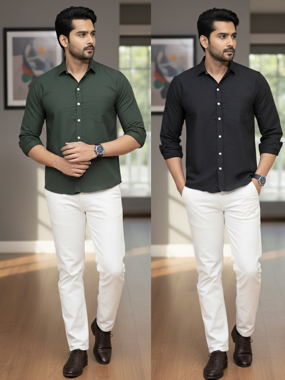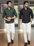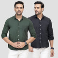 These stylish men's Airy linen shirts Combo with a solid color design will give your outfit a timeless, sophisticated touch. This full-sleeve shirt is perfect for both formal and casual settings because of its durability and all-day comfort. The spread collar adds a sophisticated touch, and the button closure ensures a neat fit. Made from a high-quality linen fabric, this shirt's soft feel and breathability make it ideal for year-round wear. Wear it with pants for a polished office look or jeans for a laid-back weekend outing. This multipurpose shirt is a wardrobe essential for the modern man and is available in a variety of sizes.