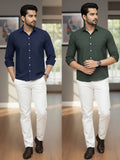 These stylish men's Airy linen shirts Combo with a solid color design will give your outfit a timeless, sophisticated touch. This full-sleeve shirt is perfect for both formal and casual settings because of its durability and all-day comfort. The spread collar adds a sophisticated touch, and the button closure ensures a neat fit. Made from a high-quality linen fabric, this shirt's soft feel and breathability make it ideal for year-round wear. Wear it with pants for a polished office look or jeans for a laid-back weekend outing. This multipurpose shirt is a wardrobe essential for the modern man and is available in a variety of sizes.
