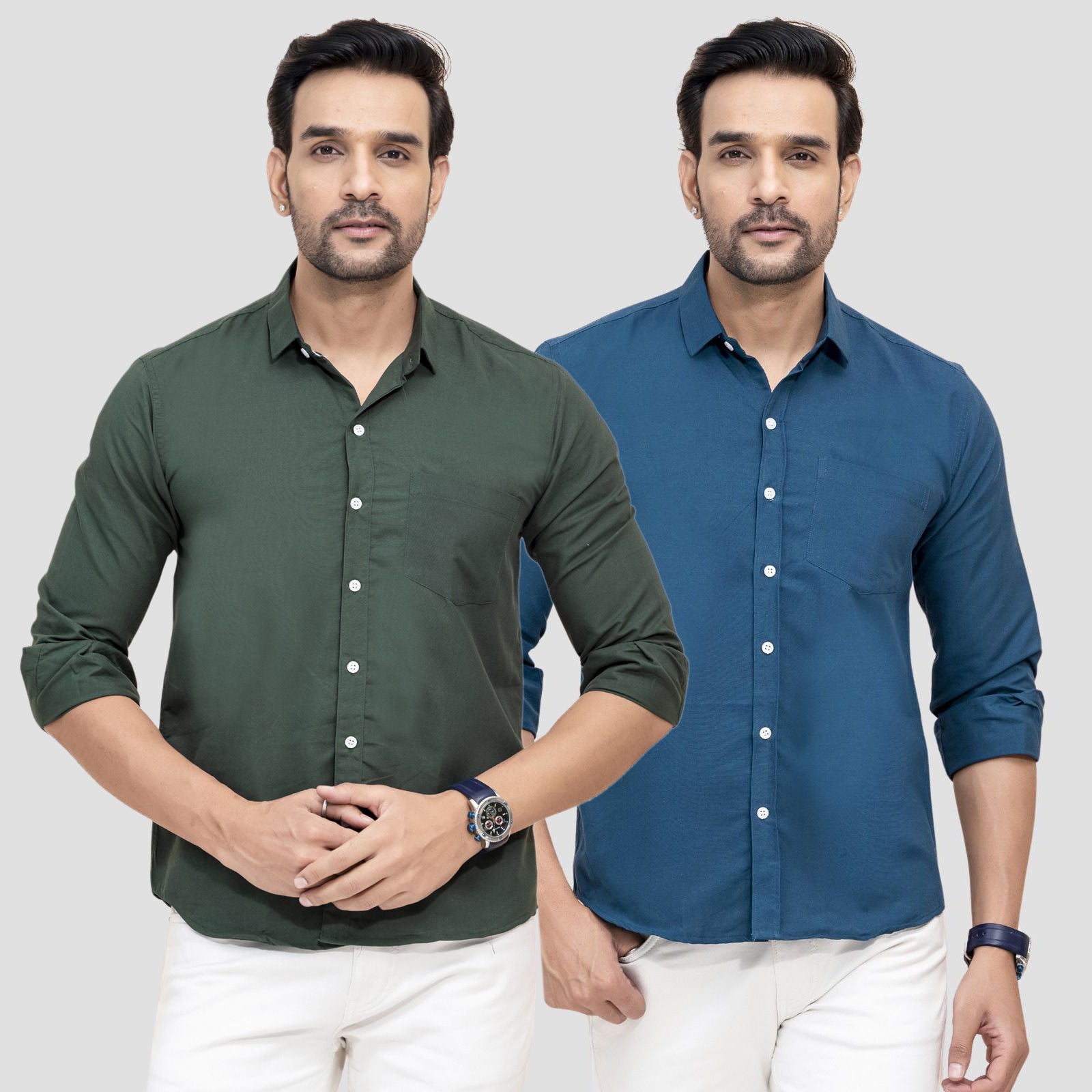 Bottle Green and Teal Blue Full Sleeve Shirt