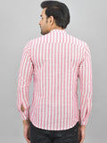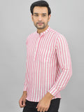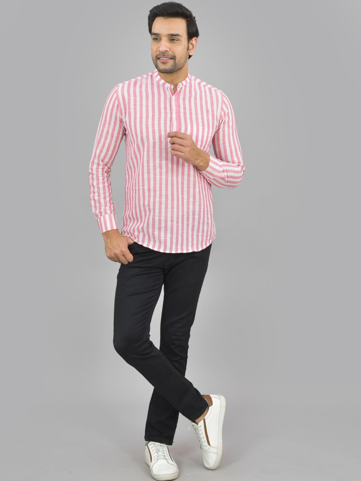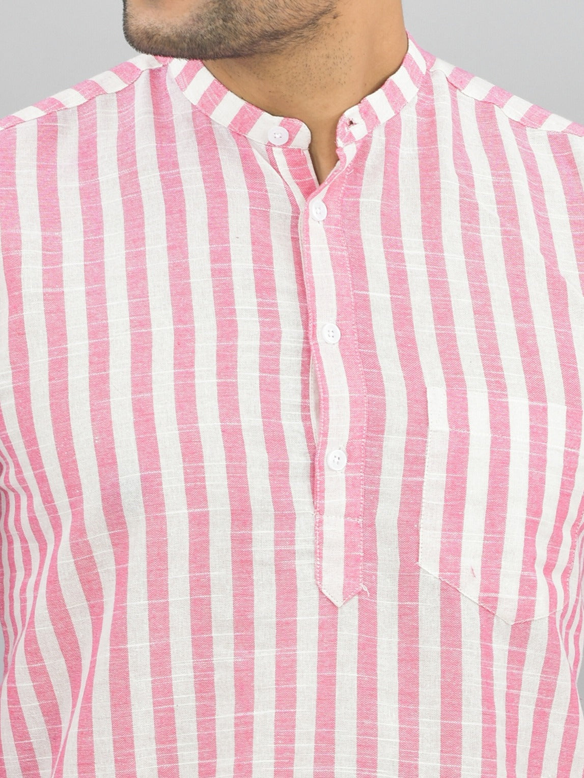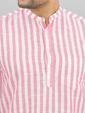 Regular Fit Pink Stripes Linen Slub Short Kurta