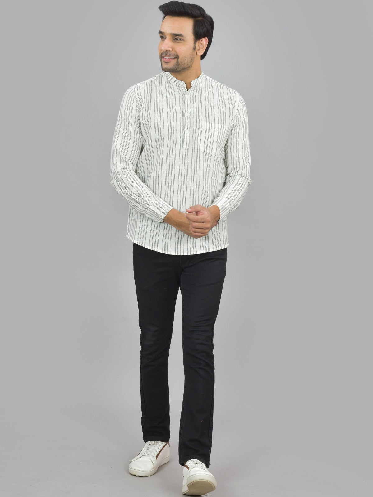 Our Pack of 2 Mens Multistriped Linen Slub Short Kurta will up your style score. these features a stylish patch pocket on the chest, a practical button fastening, and a sleek Mandarin/Chinese neck. This kurta, which is made of fine linen slub fabric, is the ideal combination of elegance and comfort. With options spanning over eight bright colours, you can easily convey your own flair. This adaptable kurta will liven up your wardrobe for any event, whether it's a special party occasion or a casual day out. Discover classic elegance with a contemporary touch, shop today!
