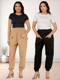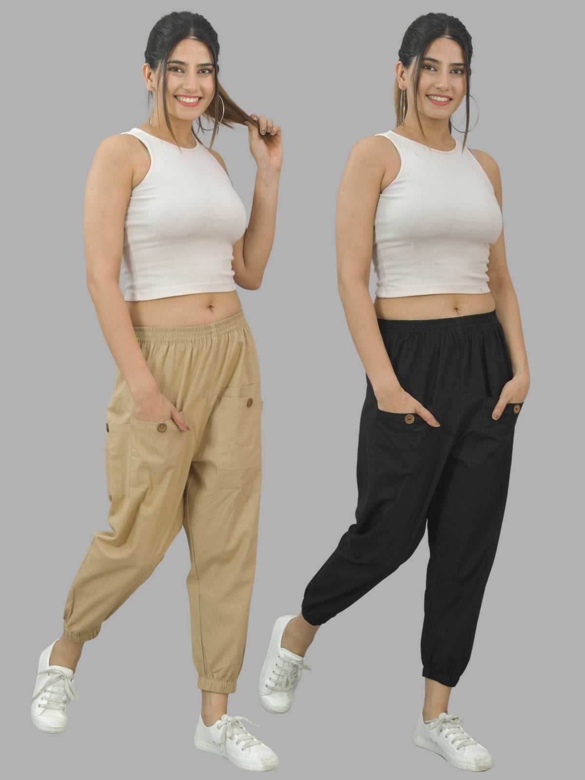 Combo Pack Of Womens Beige And Black Four Pocket Cotton Cargo Pants